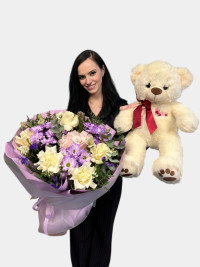 Букет Сказочные цвета с мишкой